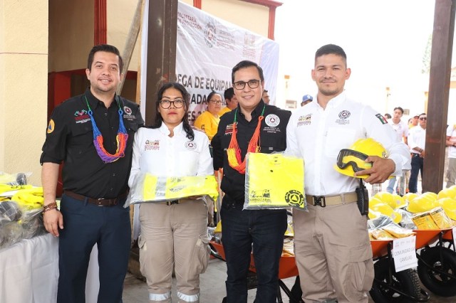 Berriozábal.- Con la finalidad de fortalecer la labor de los Comités Humanistas de Protección Civil y de la Secretaría de Protección Civil Municipal de Berriozábal, durante la temporada de lluvias y ciclones, se entregó equipamiento para fortalecer sus actividades en la mitigación y prevención de riesgos.