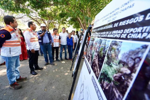 Durante su intervención, el secretario de Protección Civil, Mauricio Cordero Rodríguez, señaló que mediante el Fondo para la Gestión Integral de Riesgos de Desastres, se destinará una inversión importante para la construcción del muro de gavión en la Unidad Deportiva, un muro de contención en la cancha deportiva del Fraccionamiento Santa Fe, la construcción del dren pluvial camino a Nuevo Bochil y el desazolve y rehabilitación del dren pluvial del tramo carretero Tuxtla Gutiérrez-Chiapa de Corzo.