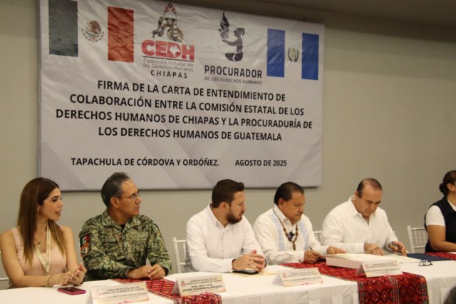 Tapachula.- La Procuraduría de los Derechos Humanos de Guatemala y la Comisión Estatal de los Derechos Humanos (CEDH), firmaron una Carta de Intención Binacional para proteger los derechos de las personas guatemaltecas, centroamericanas que están en Chiapas o con tránsito para Ciudad de México o Estados Unidos.